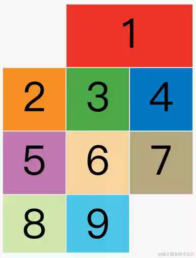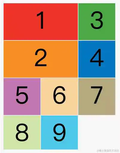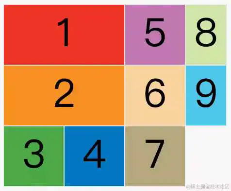 上图会先填满第一列,再填满第2列,所以3号项目在第一列,4号项目在第二列。8号项目和9号项目被挤到了第四列。