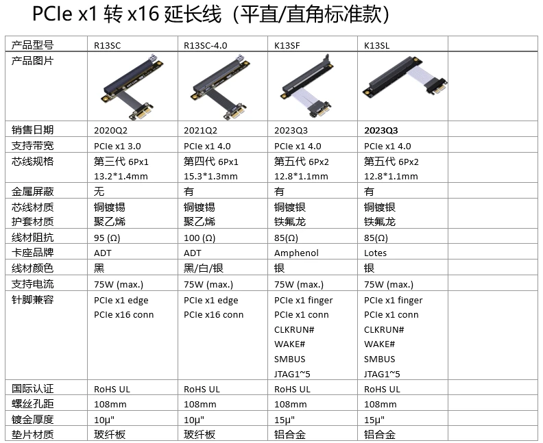 一.线材优势,ADT自行研发的第五代带屏蔽高速镀银线材,使用高品质连接器,高频支持PCIe 4.0 x1 16G/bps稳定转输