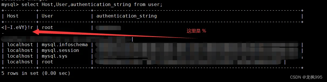 其中,密码我打了马赛克。然后就是 Host 中第一行,应该是 "%", 这里突然变成这样,我暂时也不知所措。。