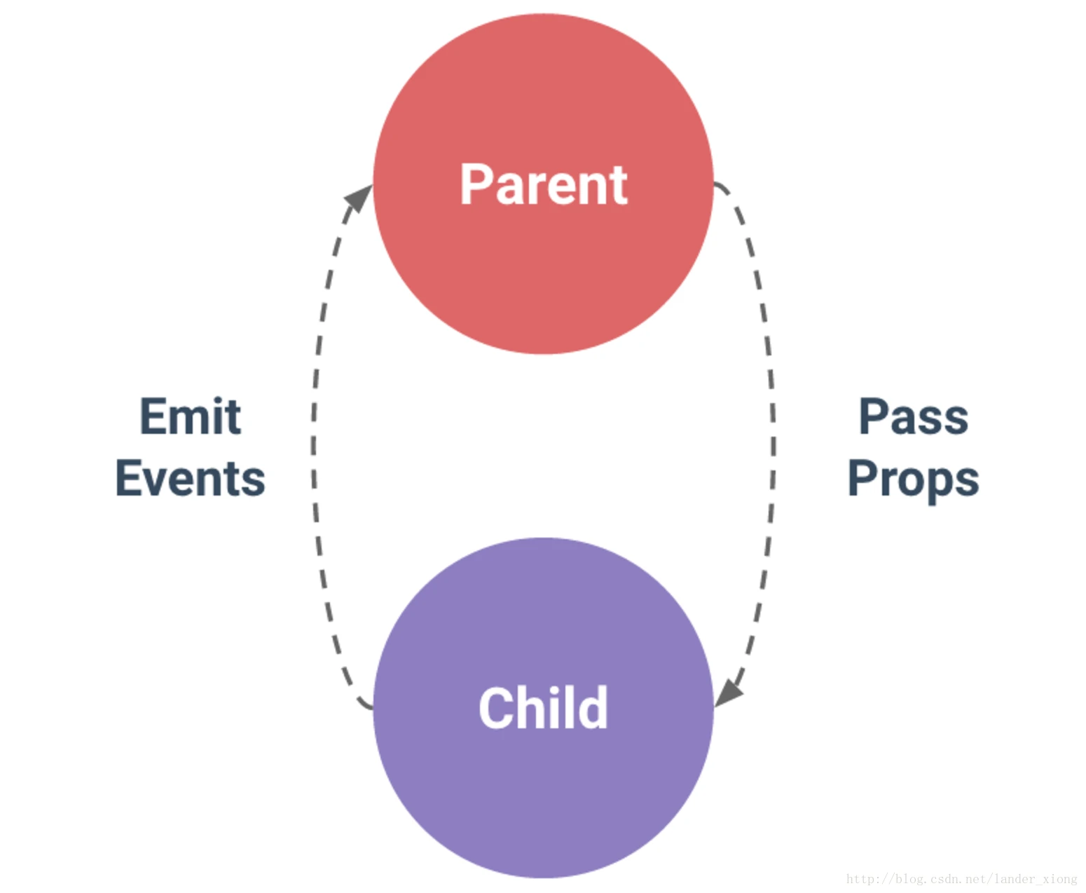 补充:父子组件的关系可以总结为 prop 向下传递,事件向上传递。父组件通过 prop 给子组件下发数据,子组件通过事件给父组件发送消息,如下图所示: