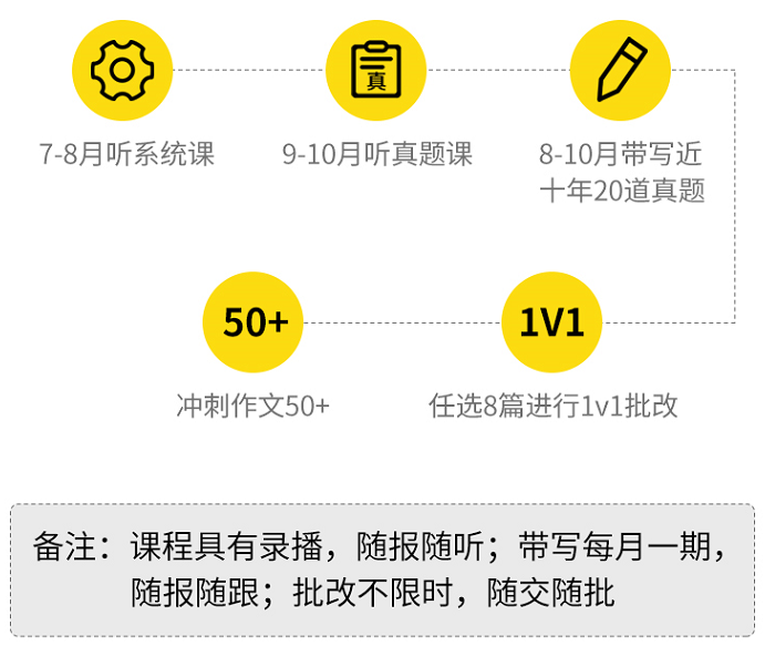 带写近10年写作真题,8、9、10月循环开设,随时可跟,先听课,再带写,后批改。