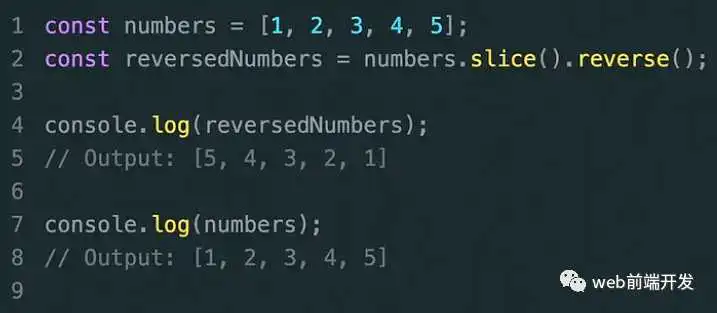 注意:reverse()方法会直接修改原数组,不会创建新数组。如果需要保留原始数组的副本并执行反向操作,可以先使用 slice() 方法创建一个新数组,然后调用reverse() 方法。