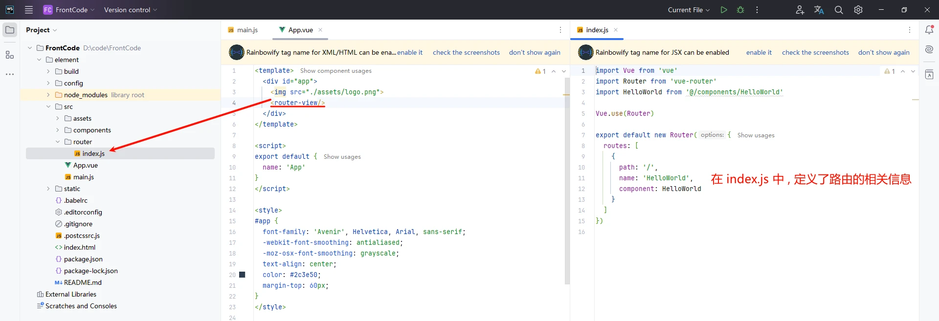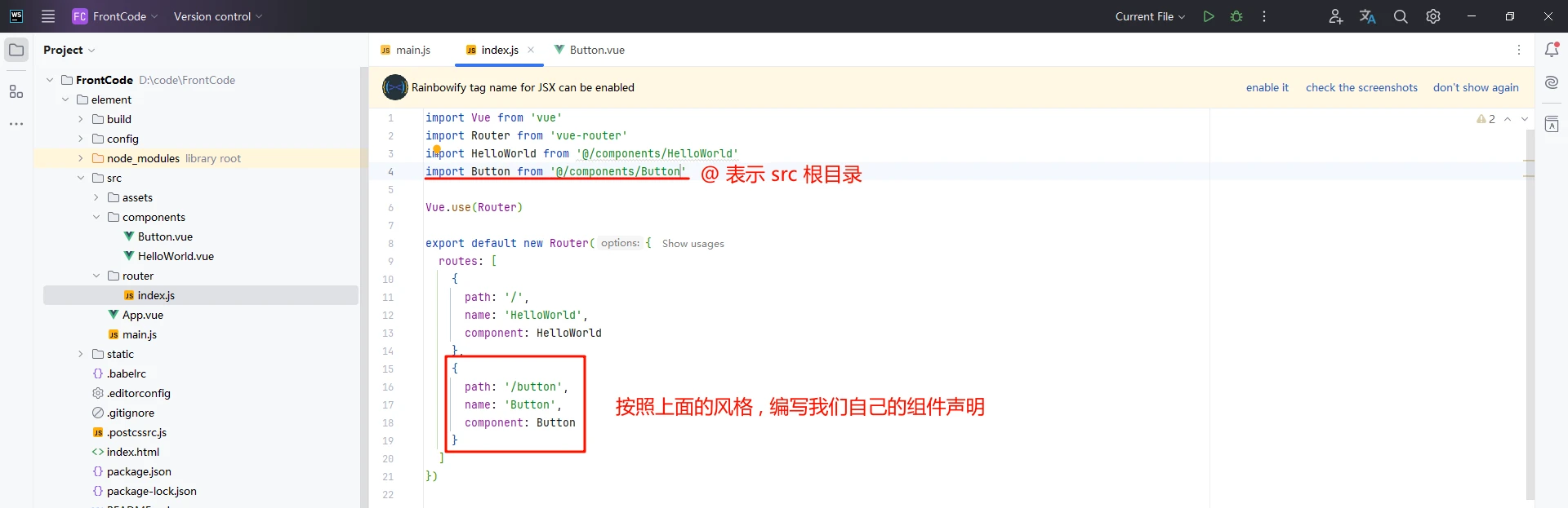 我们先将这个组件注册到 vue 中 , 打开 router 目录下面的 index.js