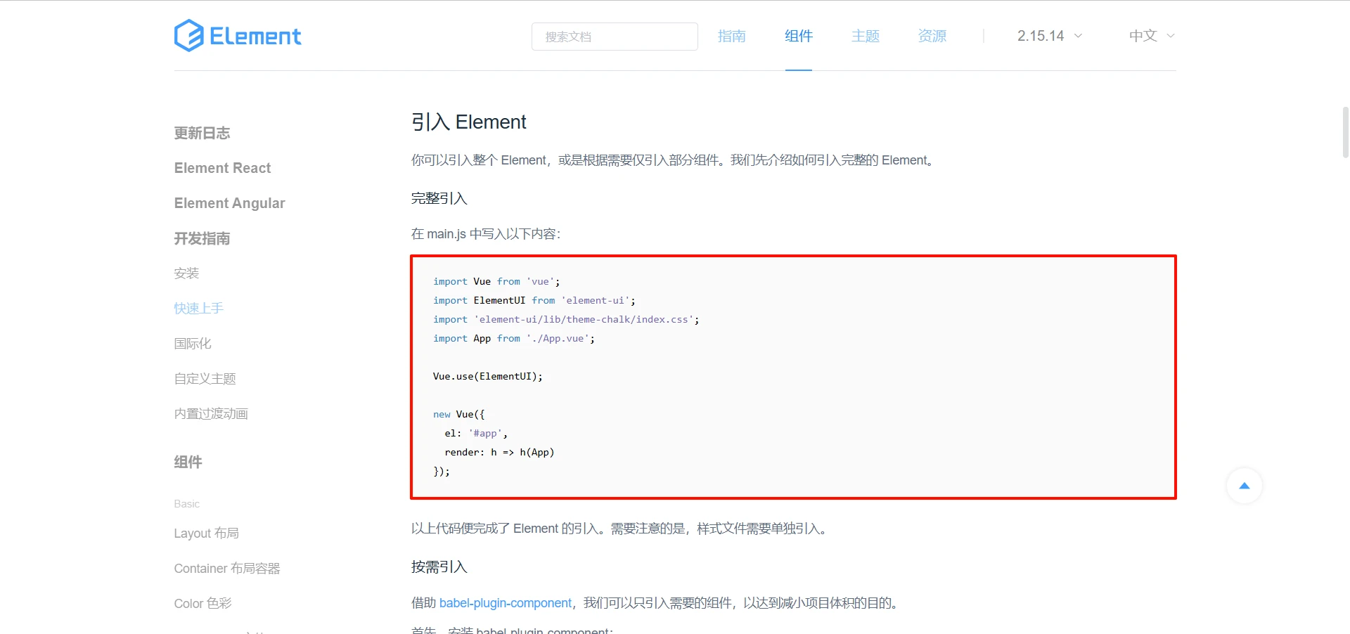 https://element.eleme.cn/#/zh-CN/component/quickstart