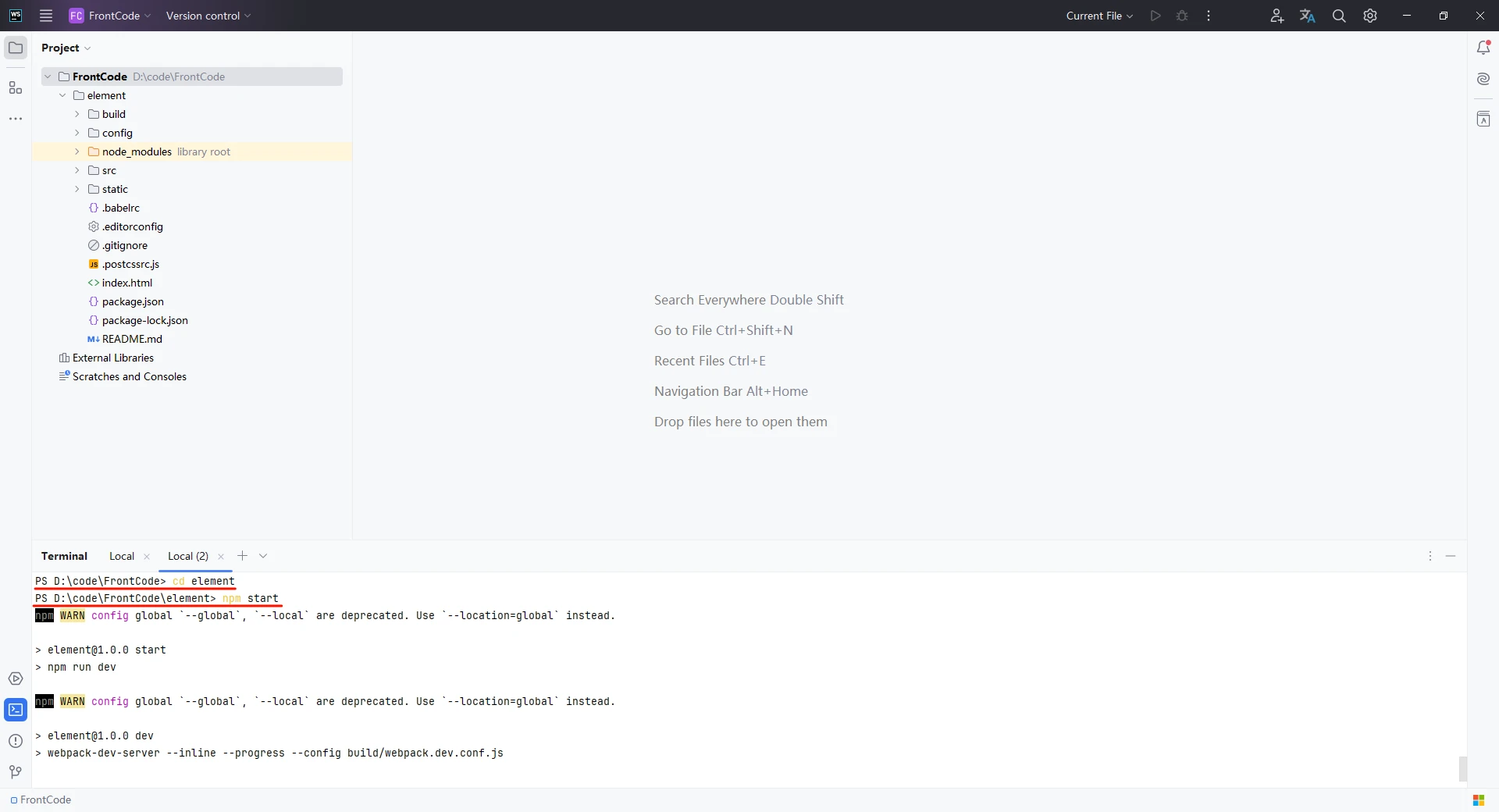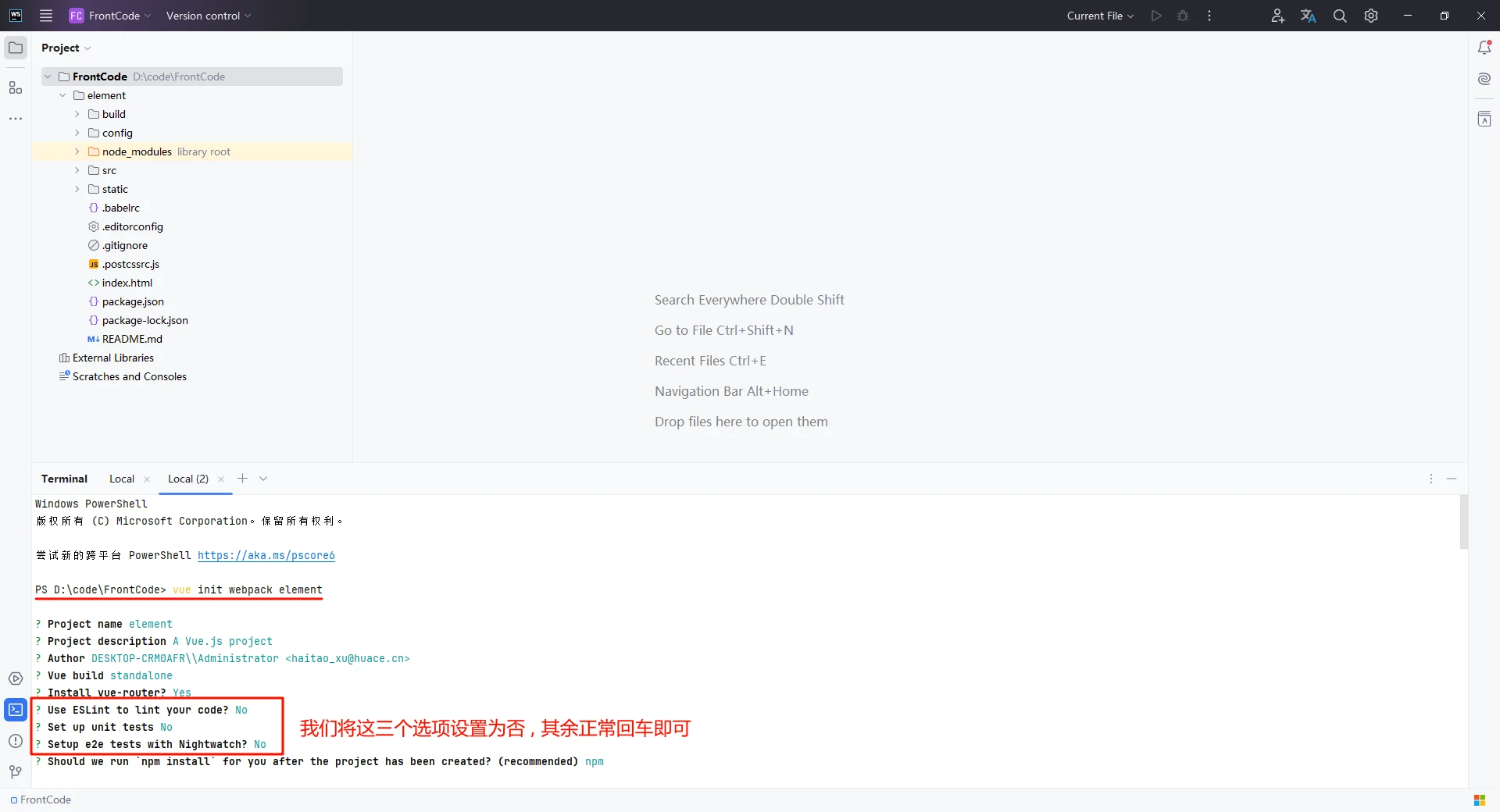 我们使用这个命令 , 就可以创建出项目名称为 element 的项目
