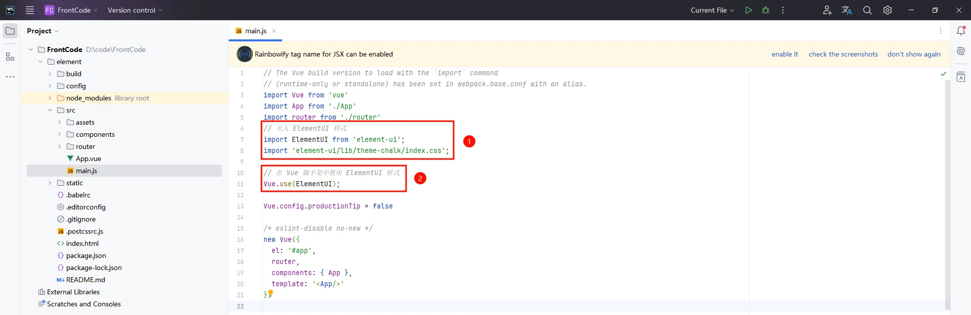 那接下来 , 我们还需要指定当前项目使用 ElementUI