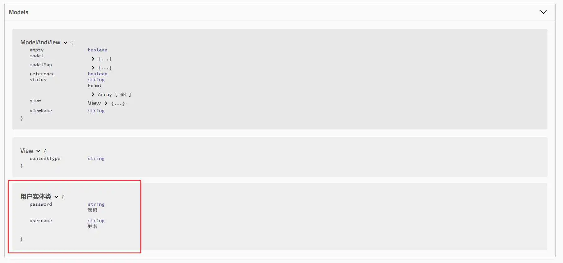 编写完实体类后,我们还是无法在 Model 中看到 User 实体类信息,需在 中新增一个返回 User 对象的请求方法: