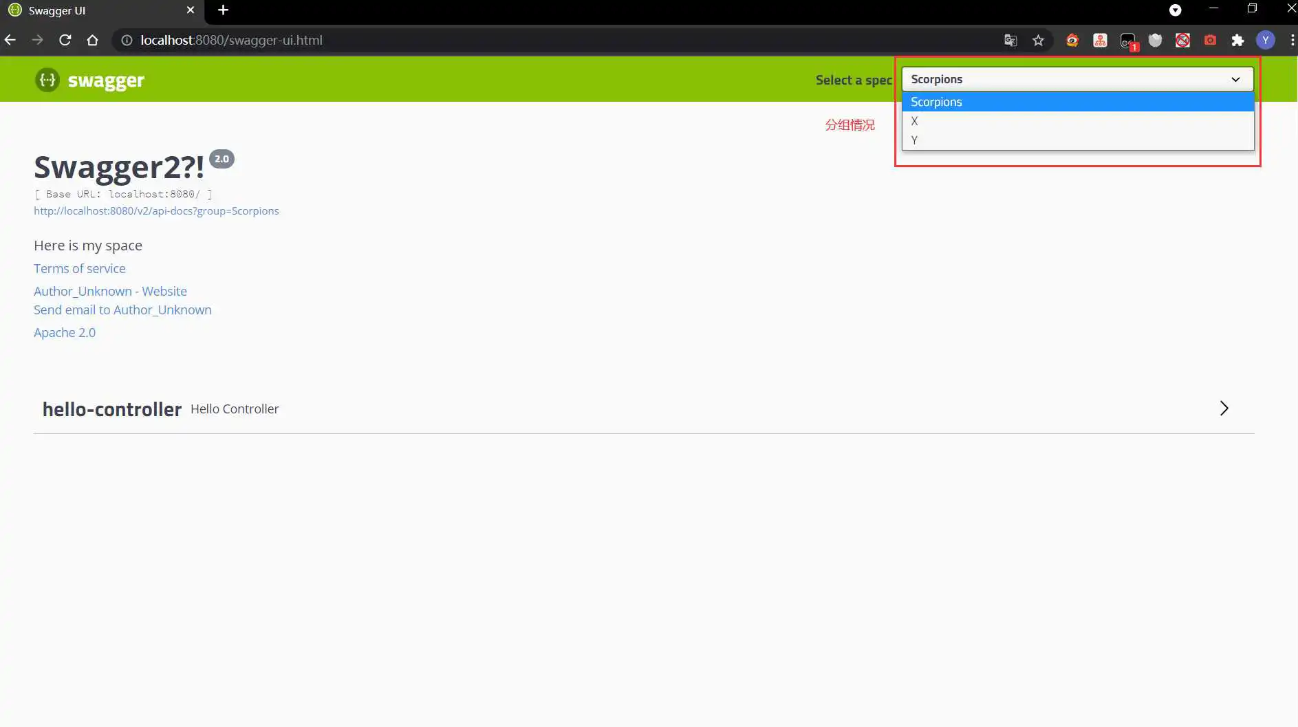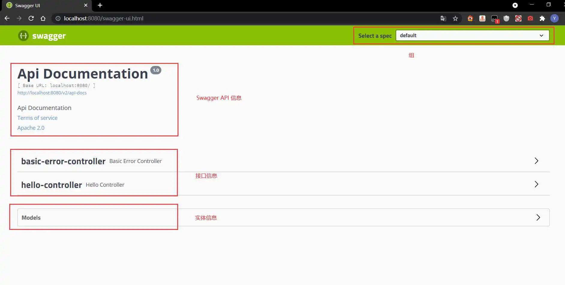 上文有提及 Docket 对象中的 属性, 用于设置 API 文档的分组,默认分组为 default。