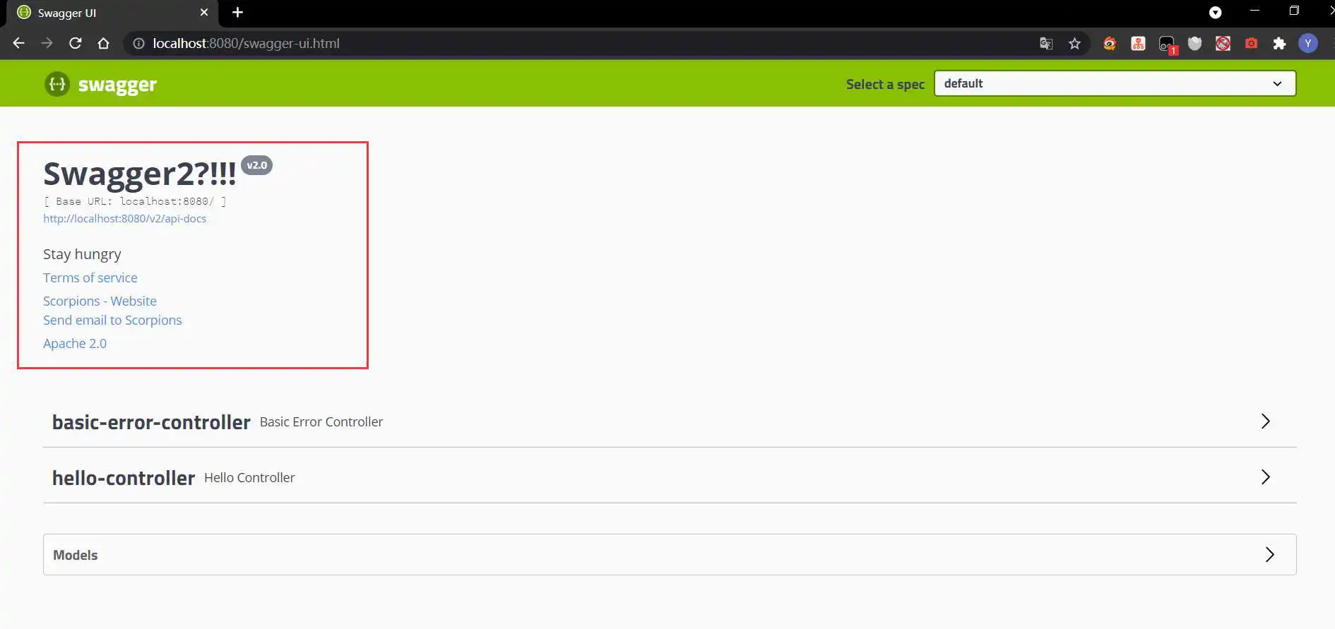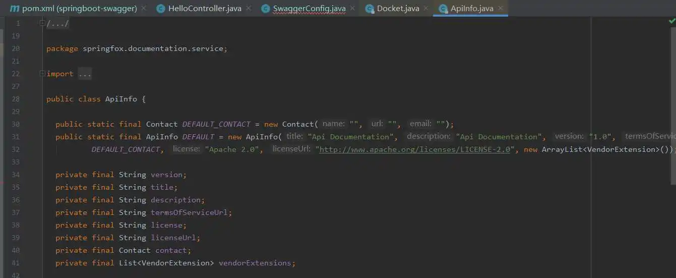 同时若想自定义 Swagger Api 信息,则需要传入 Swagger ApiInfo,如下为默认配置: