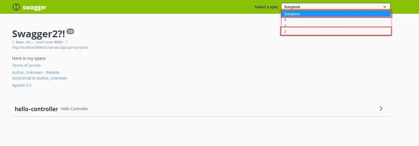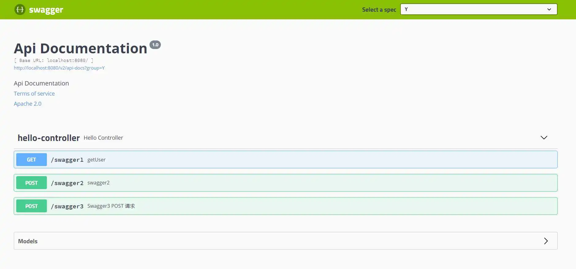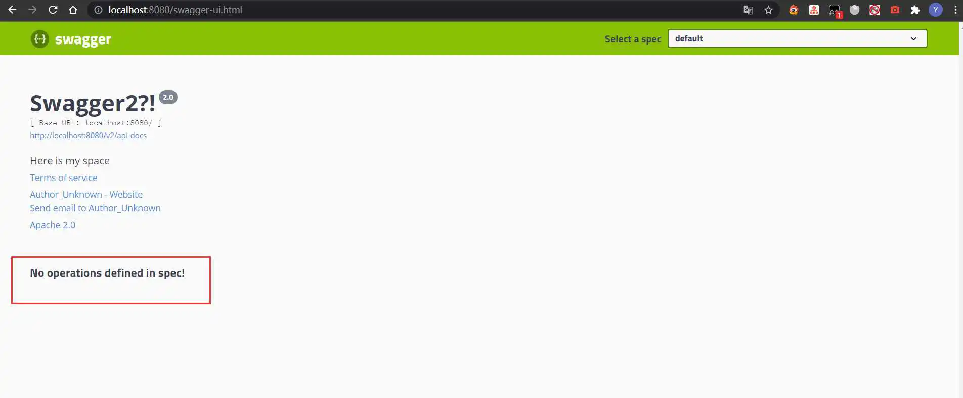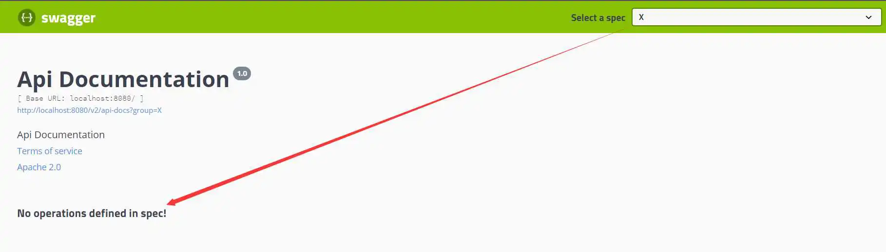 ⭐ 使得仅当前分组不启用 Swagger 文档,而其他分组仍然启用,若仅剩一个 group,则会出现如下的页面: