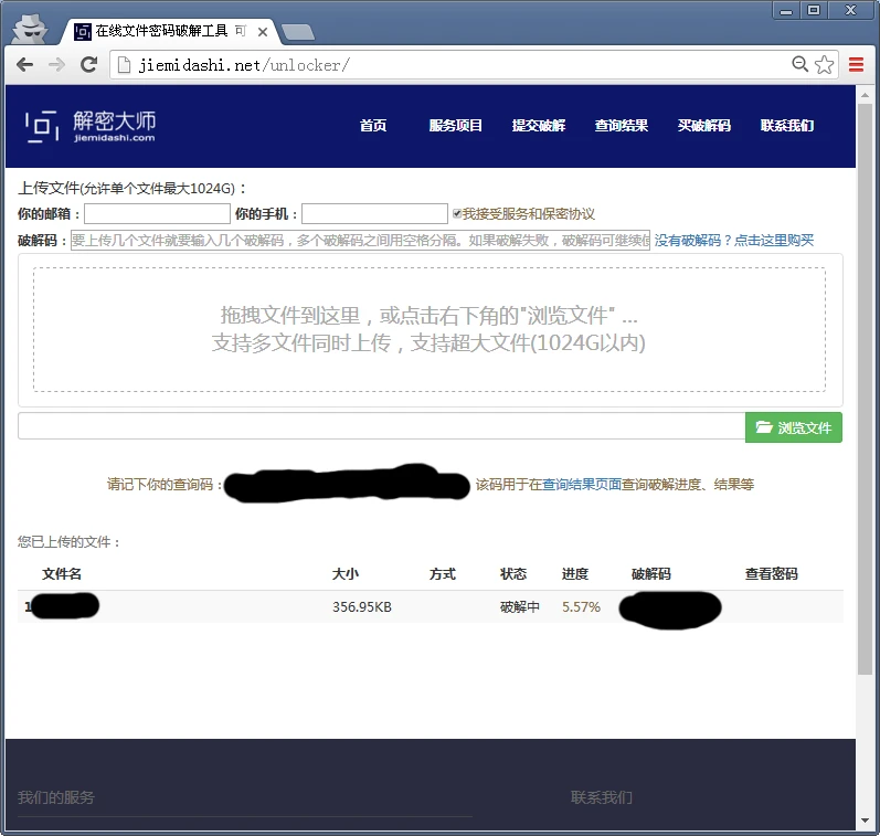第三步:我们可以在提交激活成功教程页面和查询结果页面查看到实时的激活成功教程进度,我们也可以关闭电脑或者手机,因为整个激活成功教程过程完全是在解密大师的系统进行的,出结果的时候,他们的系统 还会发送短信或者邮件通知到我们的,非常的简单方便: