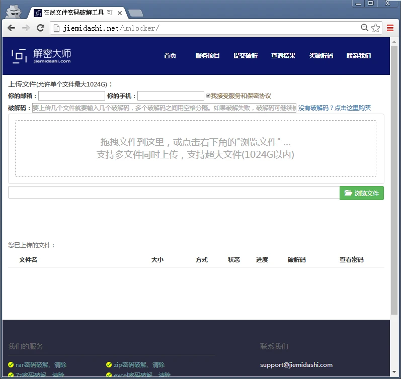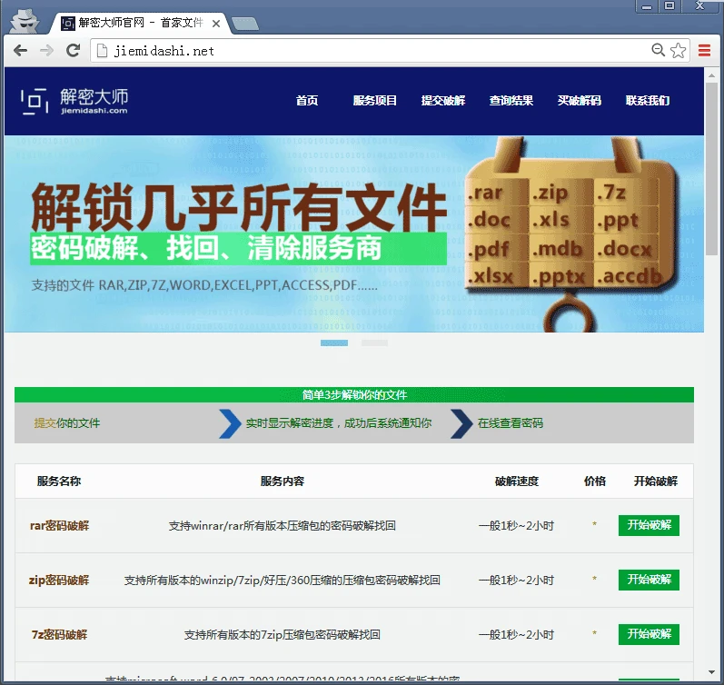 第一步:浏览器地址栏输入解密大师官网网址:https://jiemidashi.com/