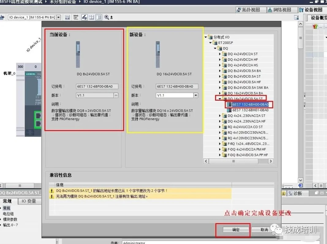 替换操作:双击2位模块图标后弹出一个更换模块的对话框,选择“更换设备”即可弹出如下更换界面: