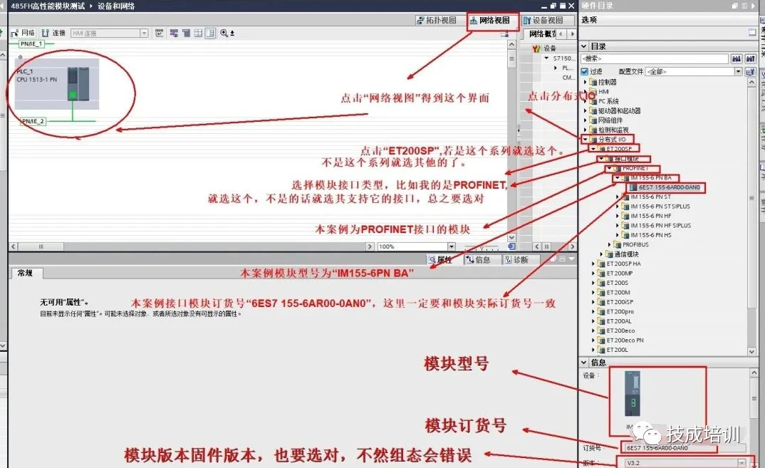 最后找到模块实际型号(本案例是IM155-6PN-BA,这里还需要找到订货号6ES7155-6AR00-0AN0。)再次强调软件上设置的必须和硬件一致,要不然就会报错!