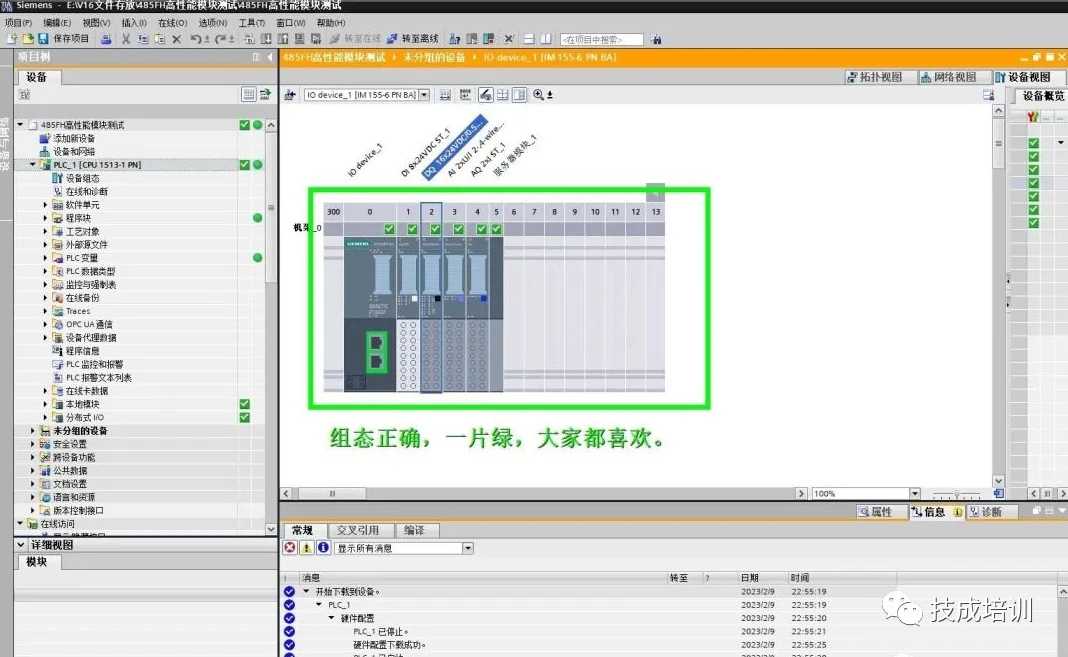 待我们选择对应的模块型号和订货号点击“确定”按钮后进行模块更换,并下载到PLC里面,这时模块正常如下图: