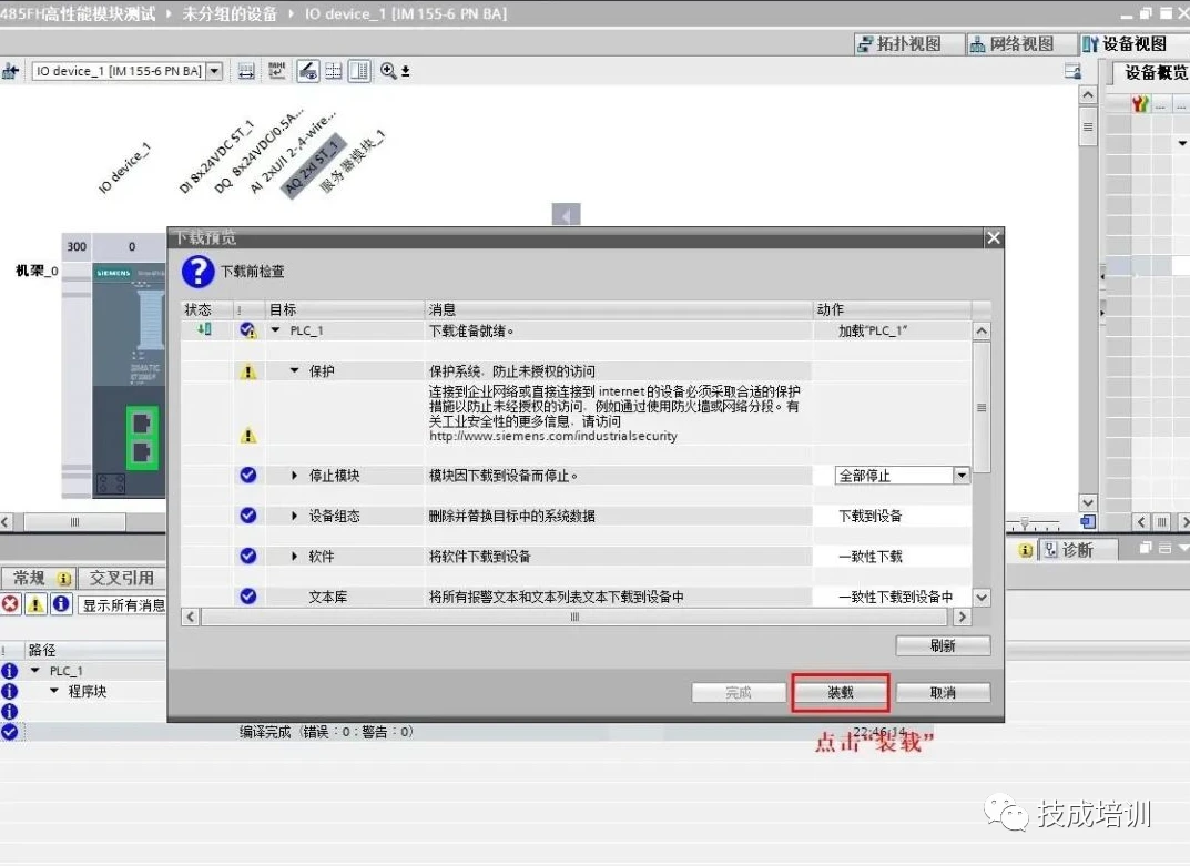 这里需要注意的“全部停止”若软件不能自动产生这几个字,得手动选,要不然“装载”按钮时灰色的,不能下载哦。下载后的在线视图: