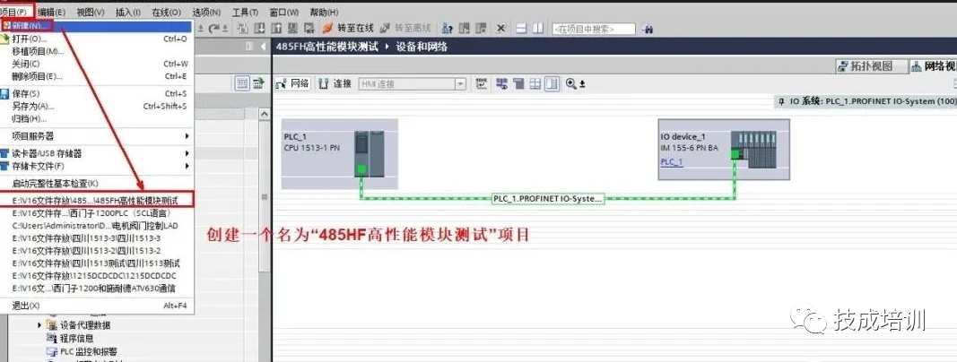 1.)创建一个名为“485HF高性能模块测试”的工程名;(当然也可以用其他名称,您喜欢就好。);