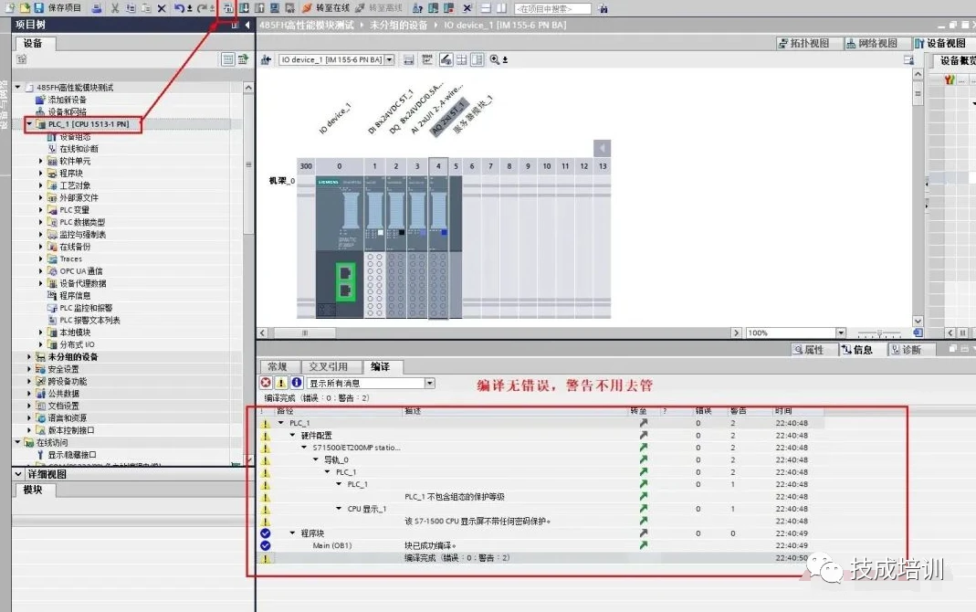 2.)组态一个控制器(本案例为西门子S7-1500/1513 1PN)如下图所示: