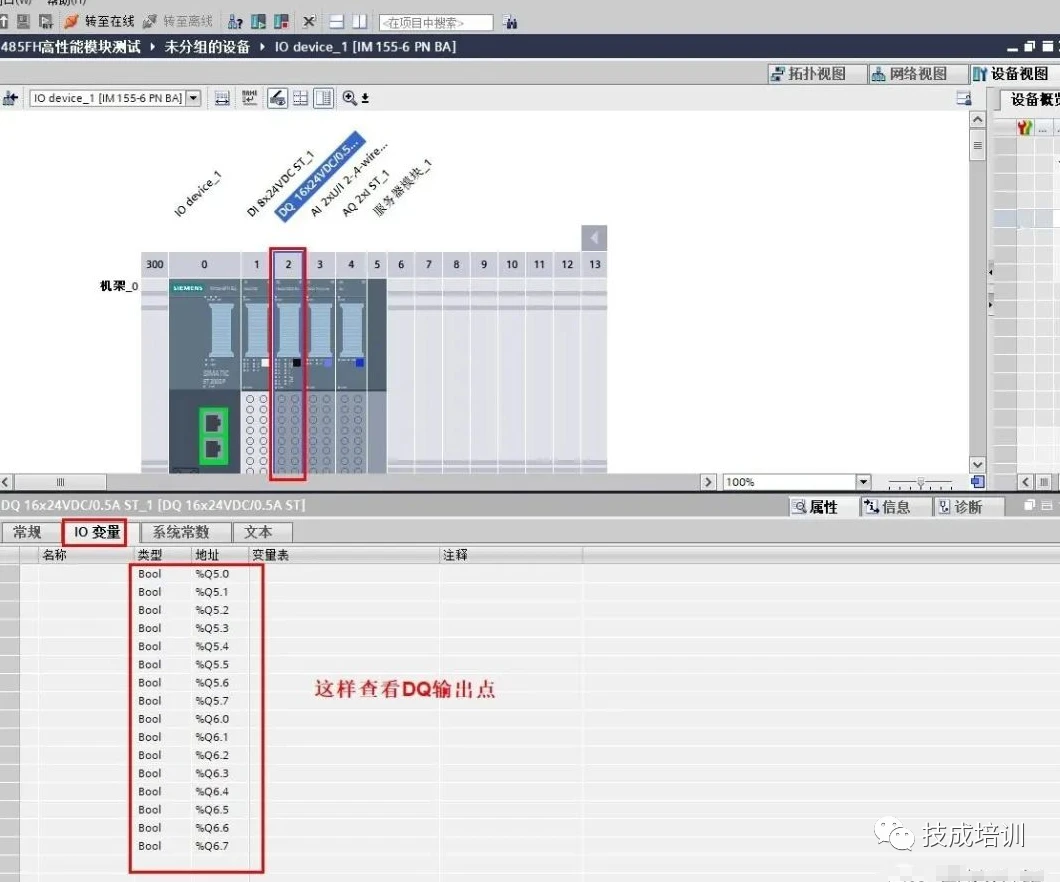 写好FB程序后,我们需要再OB1里面调用,如下试调用一次,在调用之前我们要知道ET200SP里面输出模块的地址: