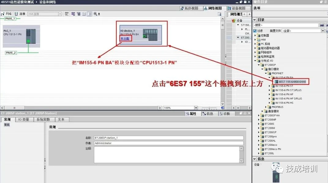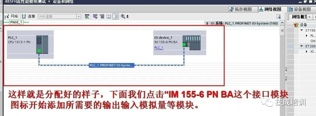 7.)给添加的硬件IM155-6PN BA接口模块分配到CPU_1的PROFINET网口:
