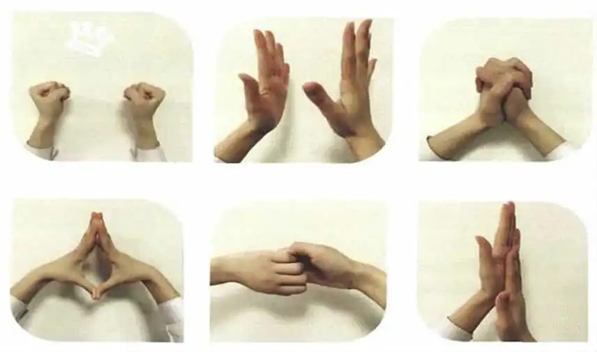 3.手指操:“握、弹、夹、顶、拉、搓”,每个节拍必须保持3秒,每次3分钟。