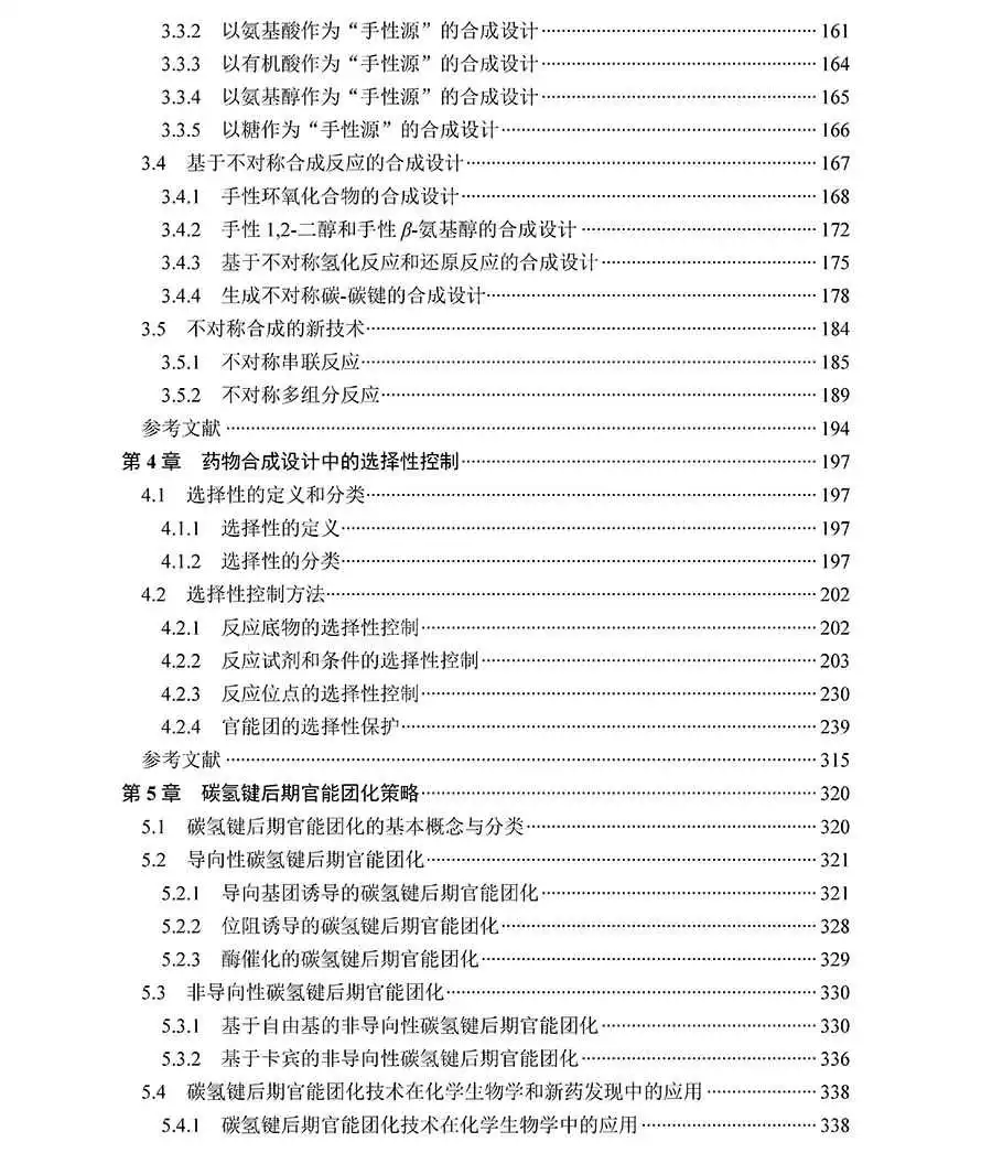 第 2 部分详细介绍了药物合成路线设计的基本策略,包括反合成分析策略、手性合成设计策略、选择性控制策略、合成路线的评价和选择等,并且对后期官能团化策略、计算机辅助合成路线 设计和药物合成新技术等前沿领域也进行了深入阐述。