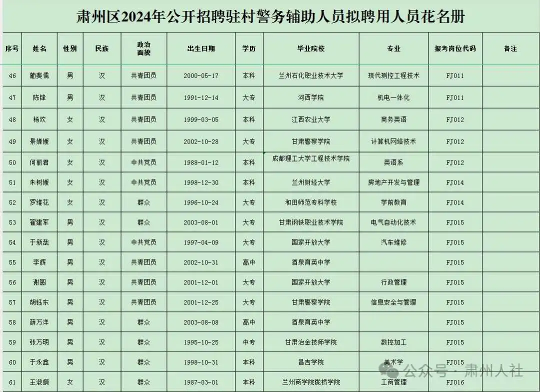 现将公开招聘驻村警务辅助人员拟聘用人员名单公示,接受广大群众和社会各界监督。如对公示人选有异议,可实名通过电话、来信、面谈等形式反映,我们将认真受理并调查核实。如不存在影响招聘的问题,将按有关规定办理聘用手续。