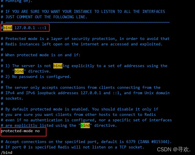 或者修改为:bind 0.0.0.0 。所有ip都可访问。建议在部署的时候还原。