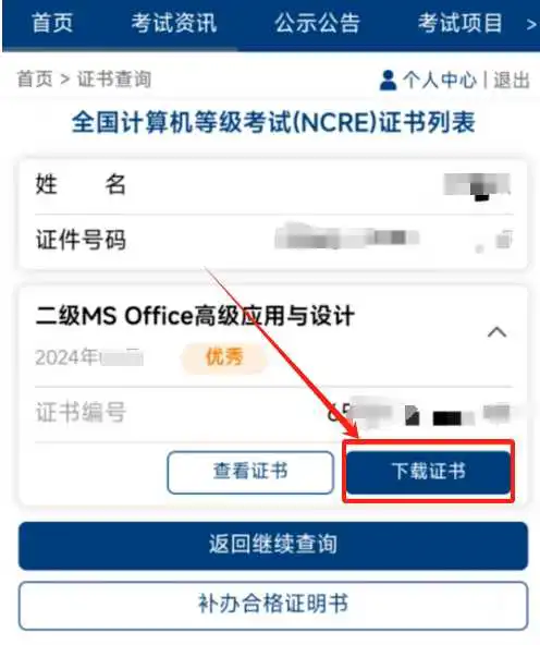 点击网址输入个人信息即可进入下载界面,即可下载二级证书。