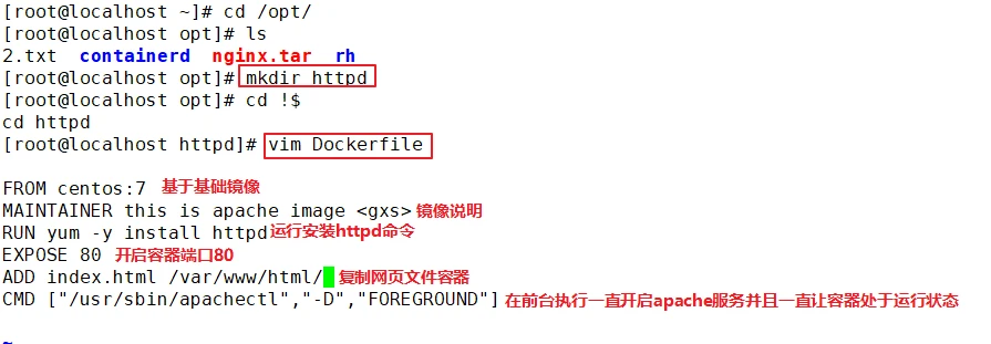 • 除了手动生成Docker镜像之外,可以使用Dockerfile自动生成镜像。Dockerfile是 由多条的指令组成的文件,其中每条指令对应Linux 中的一条命令,Docker 程序将读取Dockerfile 中的指令生成指定镜像。