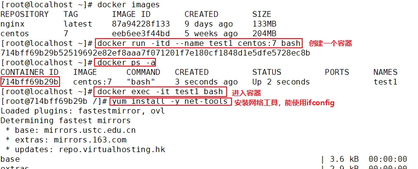在所基于的镜像上执行命令,并提交到新的镜像中
