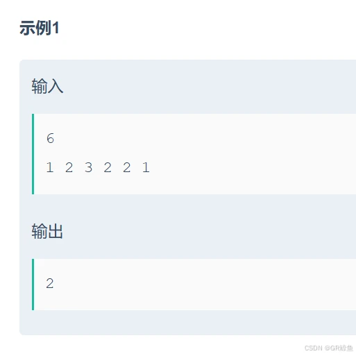 如样例所示,牛牛可以把数组A划分为[1,2,3]和[2,2,1]两个排序子序列,至少需要划分为2个排序子序列,所以输出2