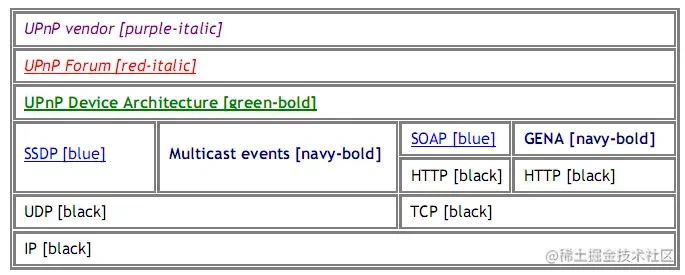 - UDP:UDP是一种无连接的传输协议,它提供了一种简单的、无状态的数据传输方式。UPnP使用UDP主要是为了实现设备的自动发现和广播通知功能。UDP的特点是传输速度快、延迟低,适用于实时性要求较高的通信场景。通过UDP广播,设备可以在网络中发送自己的服务信息,其他设备可以通过监听UDP广播来自动发现和识别这些设备。