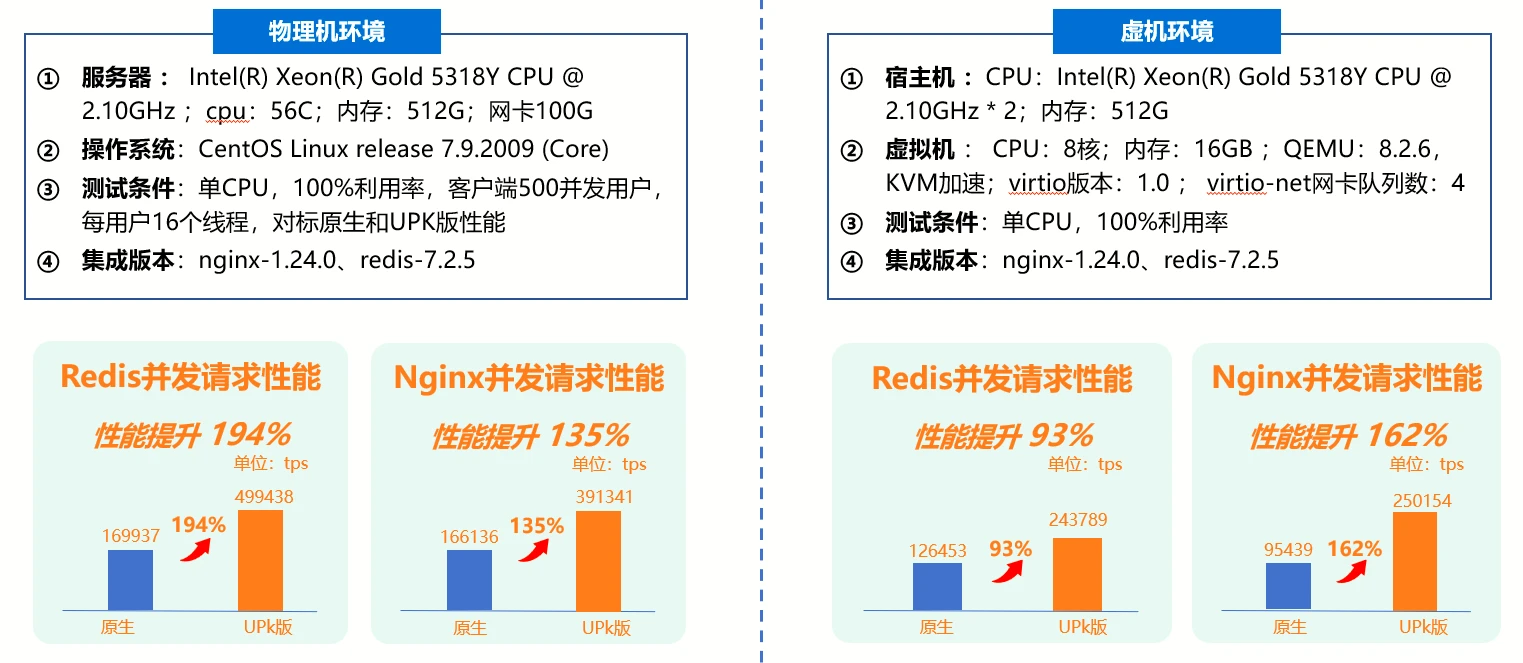 在实际应用中,高性能转发组件与用户态协议栈能够显著提高应用程序的网络数据处理能力。这种技术进步对于如Redis这样的内存数据存储系统来说尤为重要,通过集成高性能转发组件及用户态协议栈,Redis在物理机环境中的表现得到了极大提升:查询响应时间缩短了约70%,而每秒查询次数提升了近200%,显著增强了其在高并发环境下的处理能力。同样,在虚拟化环境中,Redis的并发请求性能提升约93%,表明该技术方案在不同部署环境下均能有效发挥作用。
