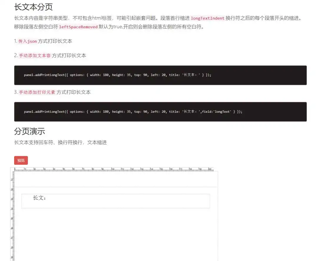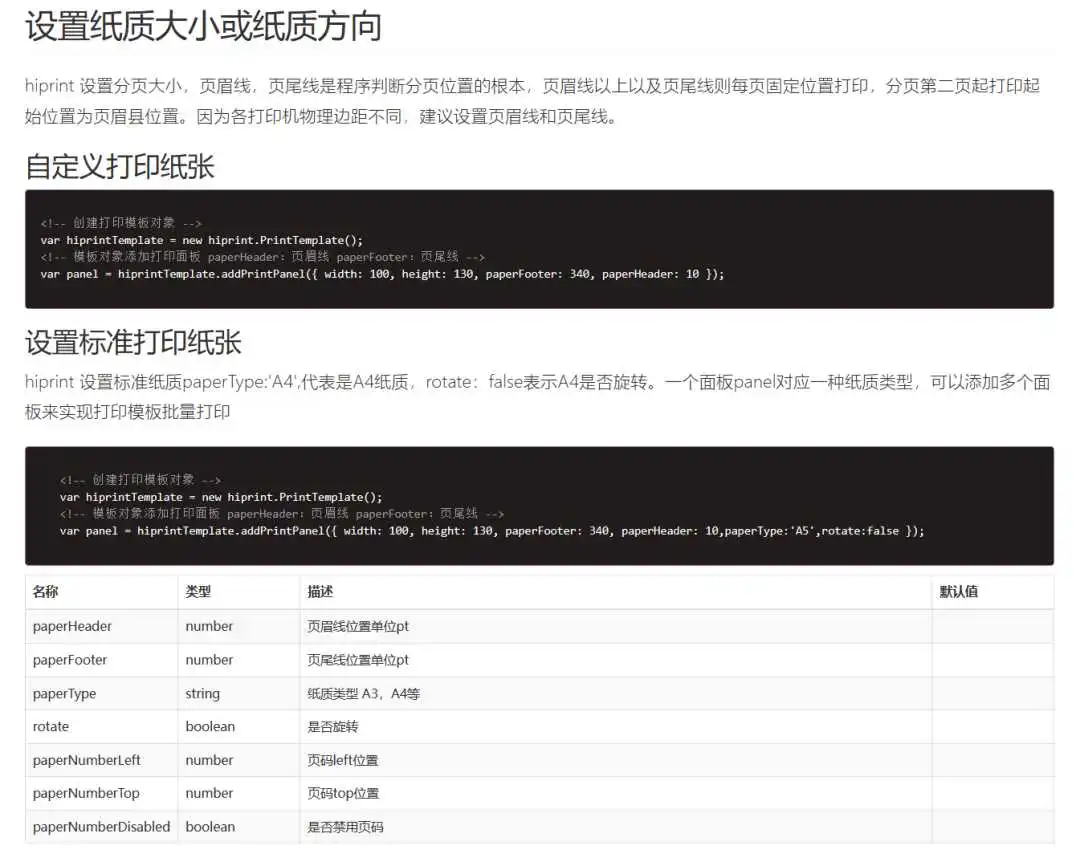 控制纸张大小和连续打印:展示了如何控制打印的纸张大小和连续打印功能。