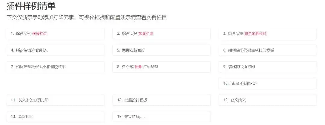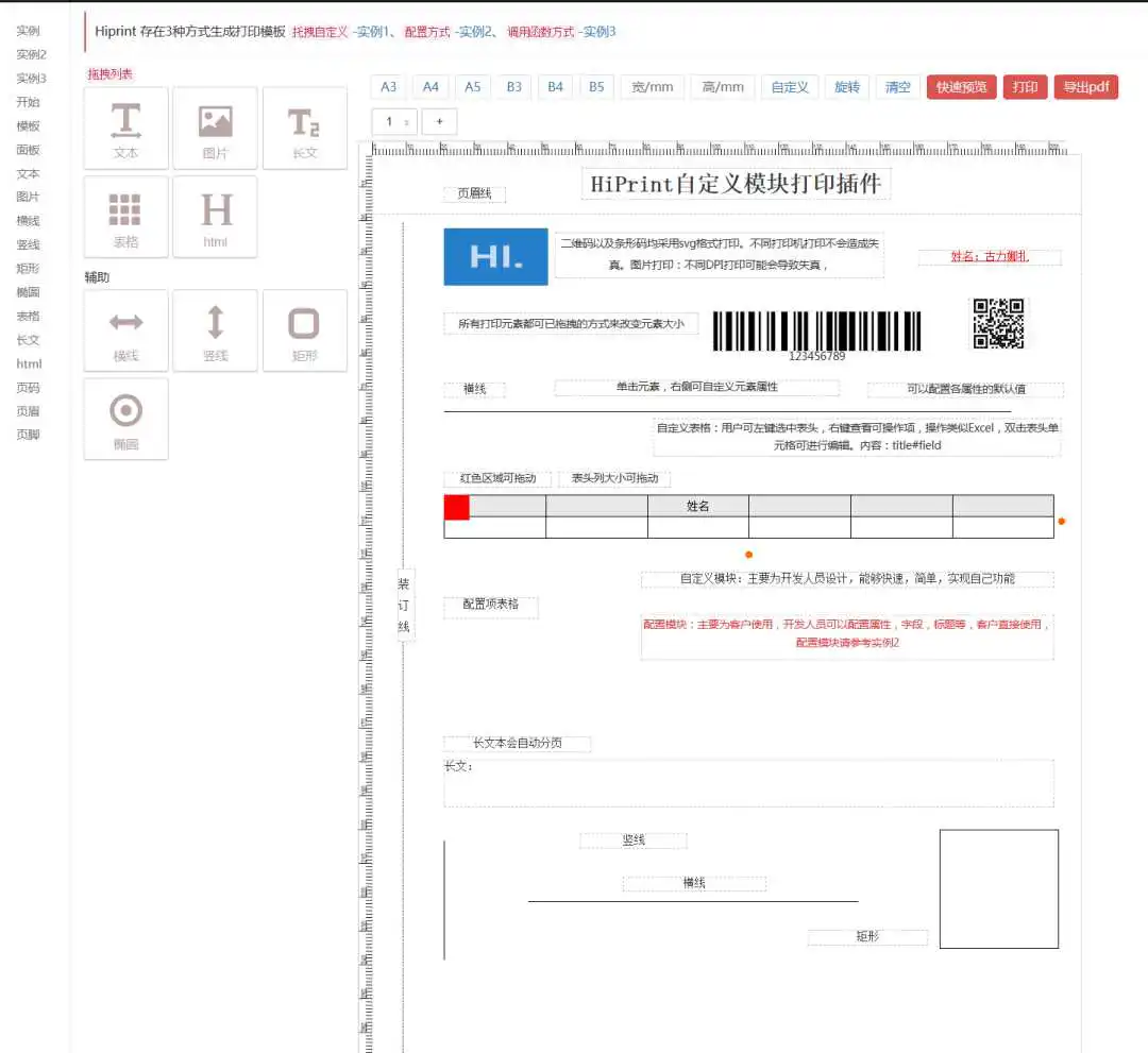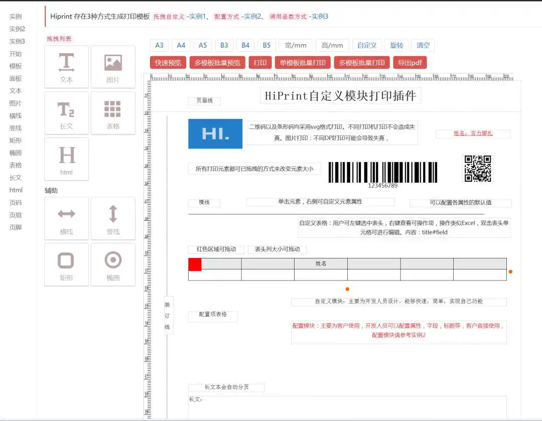 HiPrint提供了丰富的打印功能,以下是一些核心功能的展示: