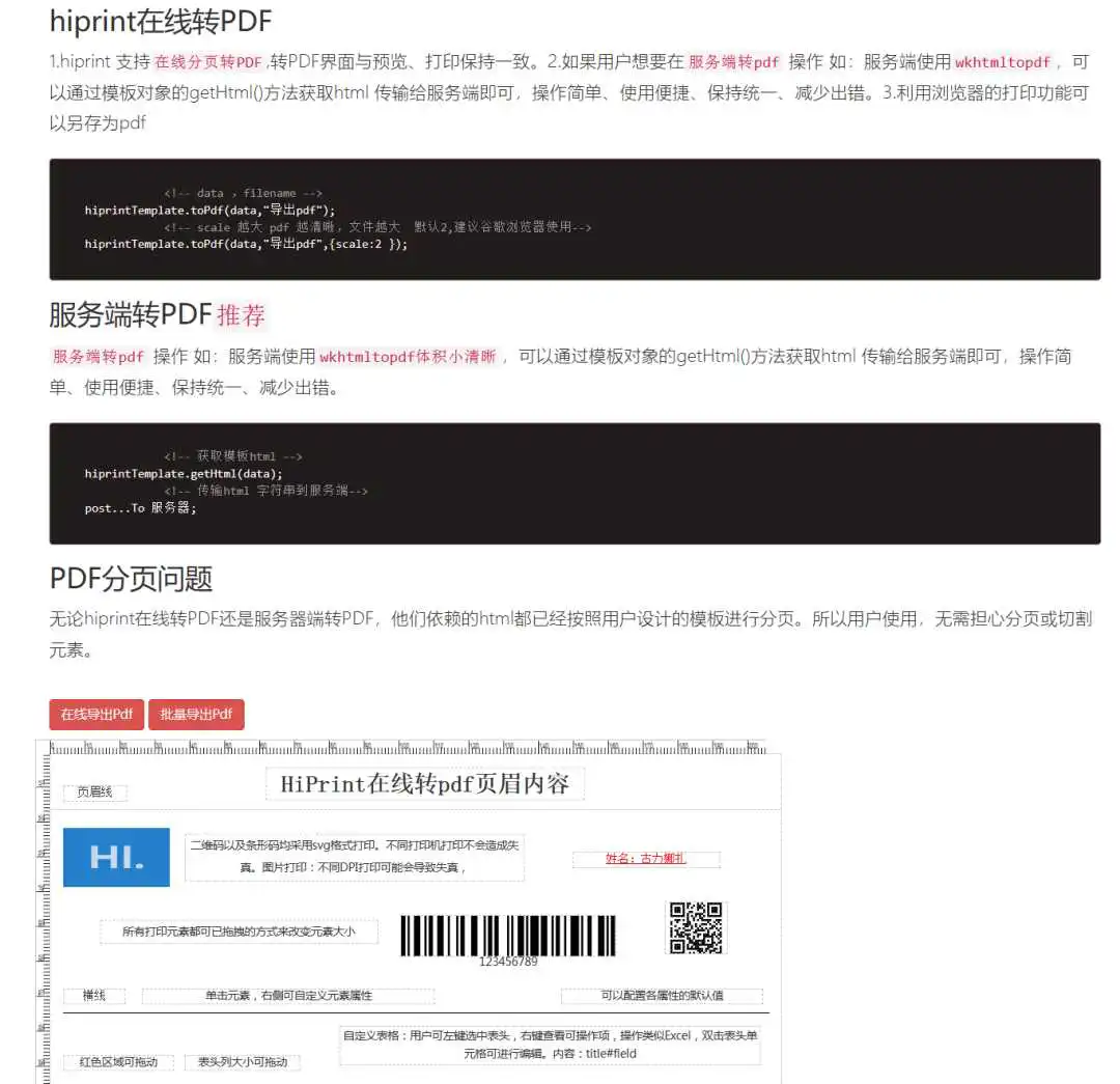 HiPrint(官网:http://hiprint.io/,在线体验:http://hiprint.io/Demo)是一款免费、简单、快速的纯JavaScript实现的打印插件,它支持快速分页预览、打印、转换为PDF等功能。HiPrint无需安装额外软件,即可在多种操作系统和浏览器上运行,适用于Angular、Vue、React等前端框架。