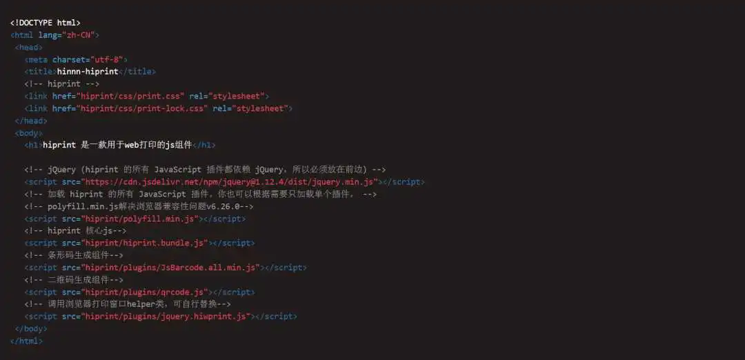 HiPrint的部署方式非常简便,直接通过引入JS文件即可。