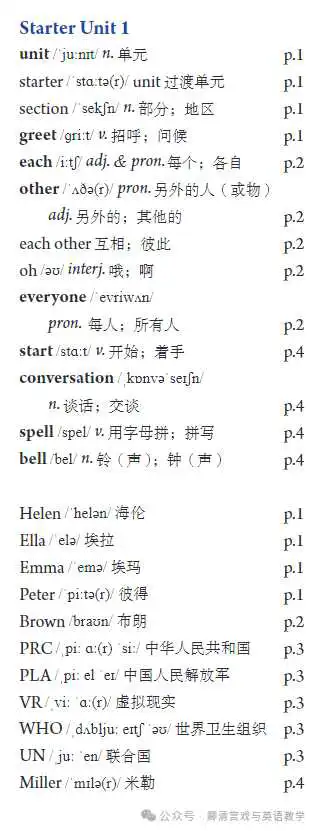 七上Starter Units 1-3 单词【最新2】音频【英汉音标】图片 2024.9.3