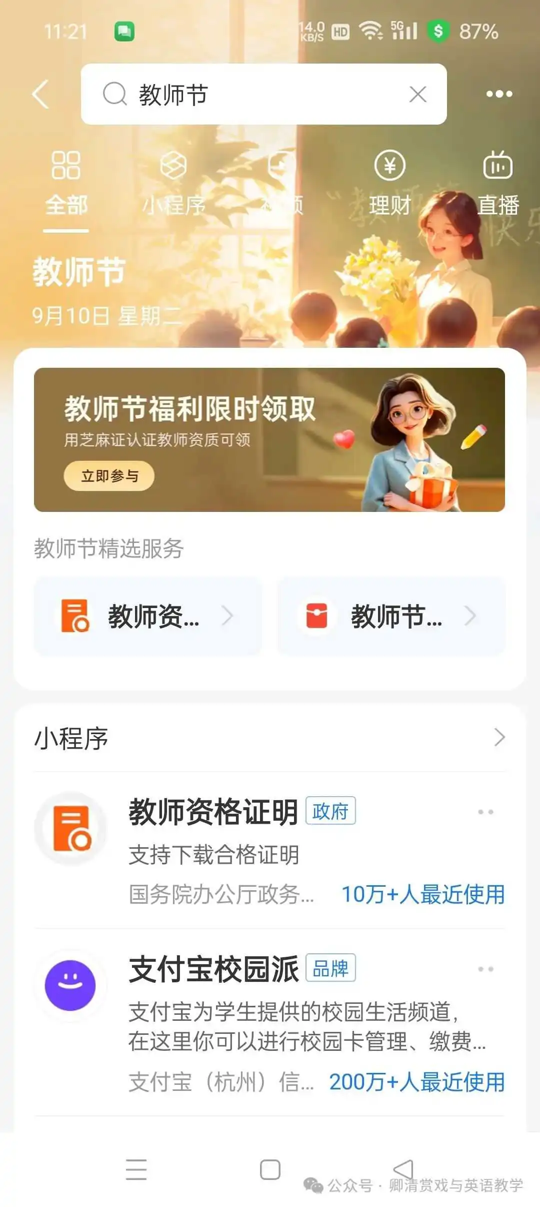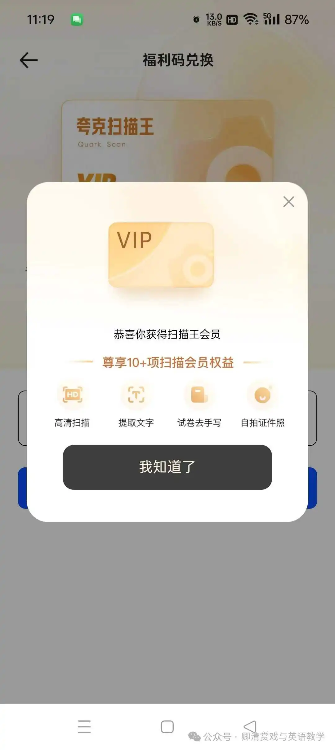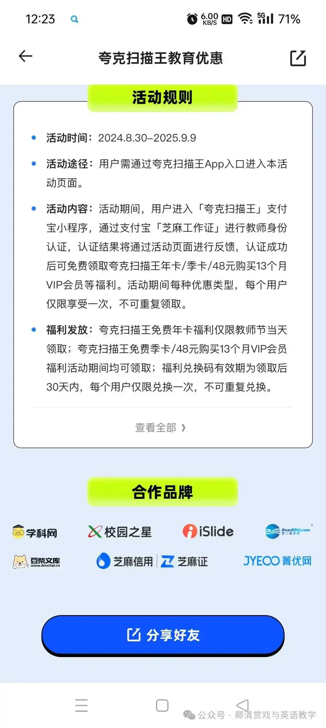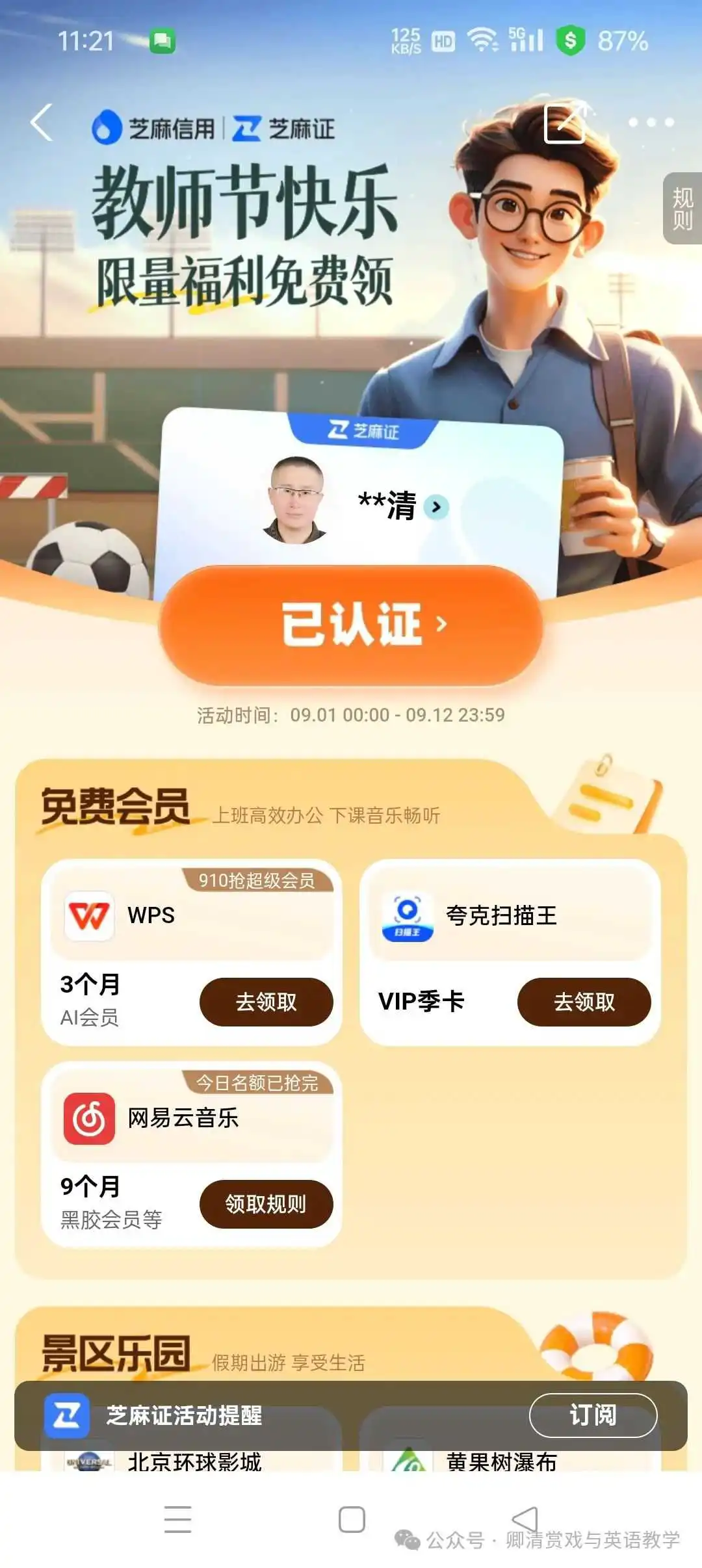 支付宝,认证教师资格后,搜索🔍教师节,领取夸克扫描王VIP季卡等,到2024.12.6