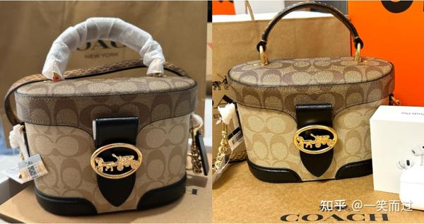 经典老花元素设计,乍一看和第一个coach托特包有点像,不过容量没这么大,手拎很精致。两种颜色有两种不同的风格,粉色充满少女感,棕色则是百搭色,配上丝巾更女性。