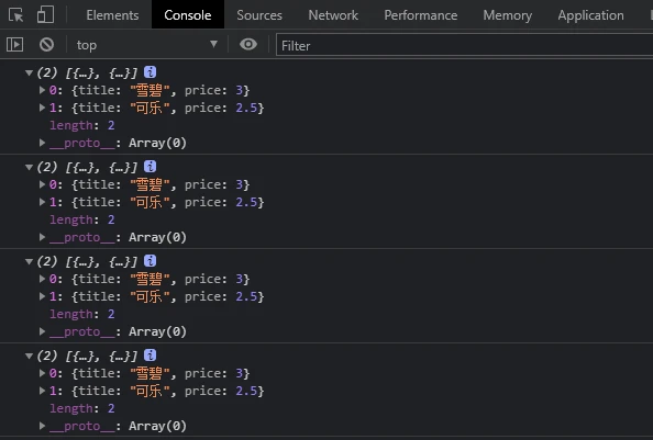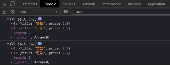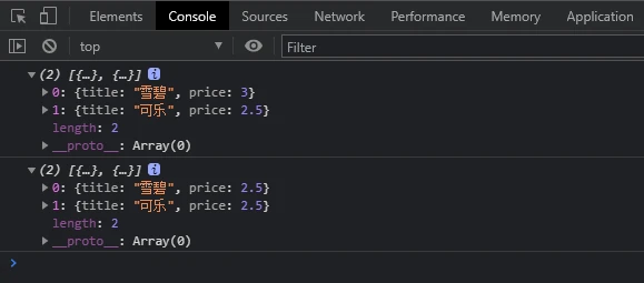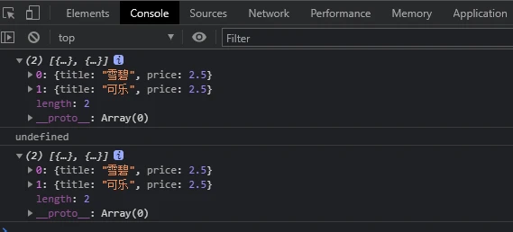 let array = [{title:"雪碧",price:2.5},{title:"可乐",price:2.5}]