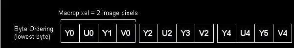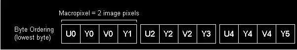 存放的码流为:Y0 U0 Y1 V1 Y2 U2 Y3 V3