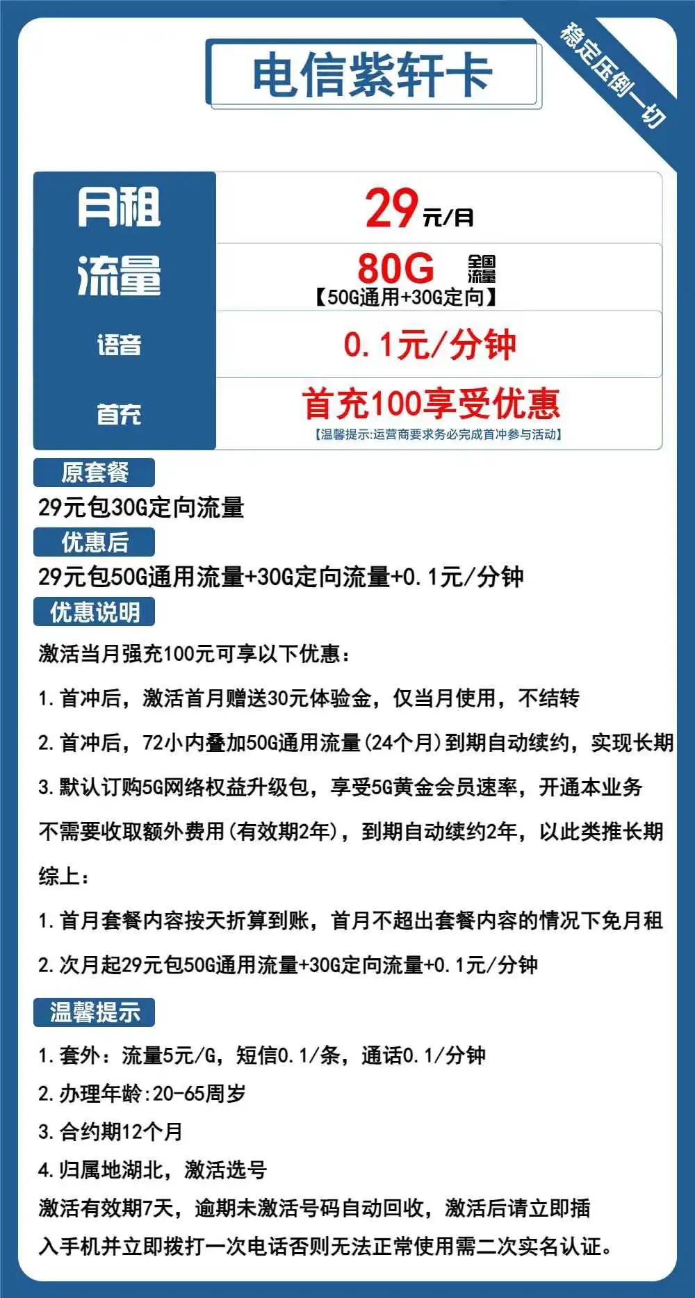 对于喜欢湖北电信的用户来说,电信紫轩卡将是一个不错的选择。这张卡被戏称为"湖北星卡",其他地区小伙伴们如果喜欢湖北星卡,也是你的选择之一,同样提供了长期套餐服务。
