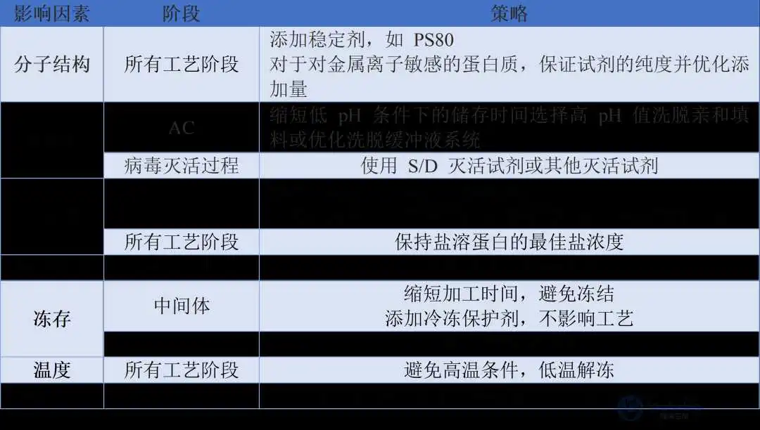 表 2纯化过程中影响蛋白质稳定性的因素及策略
