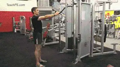 这个动作是发展上肢力量最为重要的动作之一,同时相比较坐姿的推举,这个动作也更为严格,想想你坐姿推举时,上半身几乎呈倾斜在进行推举,这让胸肌也多少会参与进来,分摊了肩部的压力,所以,站姿能够让你避免这种不必要的浪费。