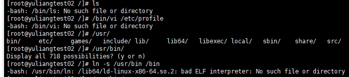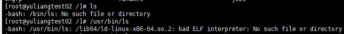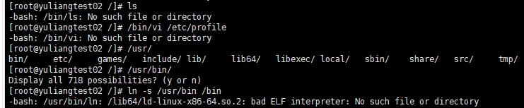 如下图,但我们发现,还是报错,要先恢复 /lib64才行;那我们ls命令不能用了,怎么把软链接加回来啊