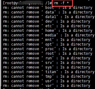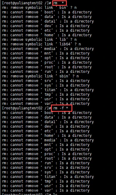 如下图,我们的 rm * 根本就不会删除所有的文件,只会删除那4个文件。所有文件夹及文件夹目录里的数据都还在。