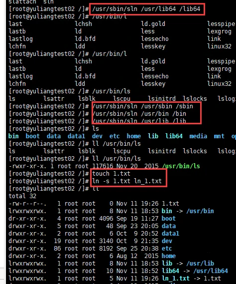 百度了一下,发现 /usr/sbin 下面还有一个 sln,也是软链接的命令,救命稻草来了;