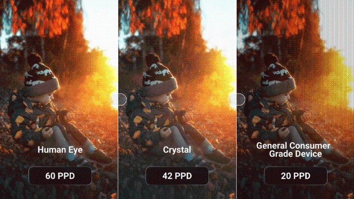 PPD的数值大小更能体现出用户在使用头戴显示类产品(如头戴 VR、头戴影院、头戴 AR 等,后续简称:头显)时所感受到的清晰度!